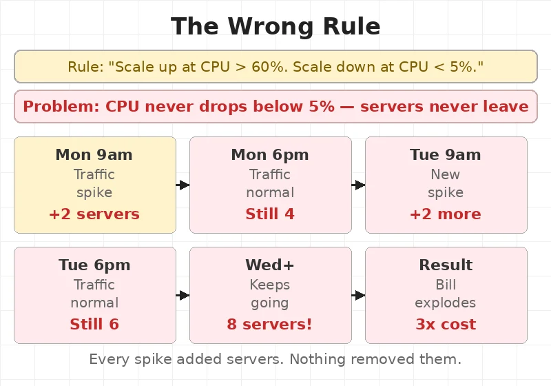 Then traffic dropped. But the servers stayed. No rule told them to leave.